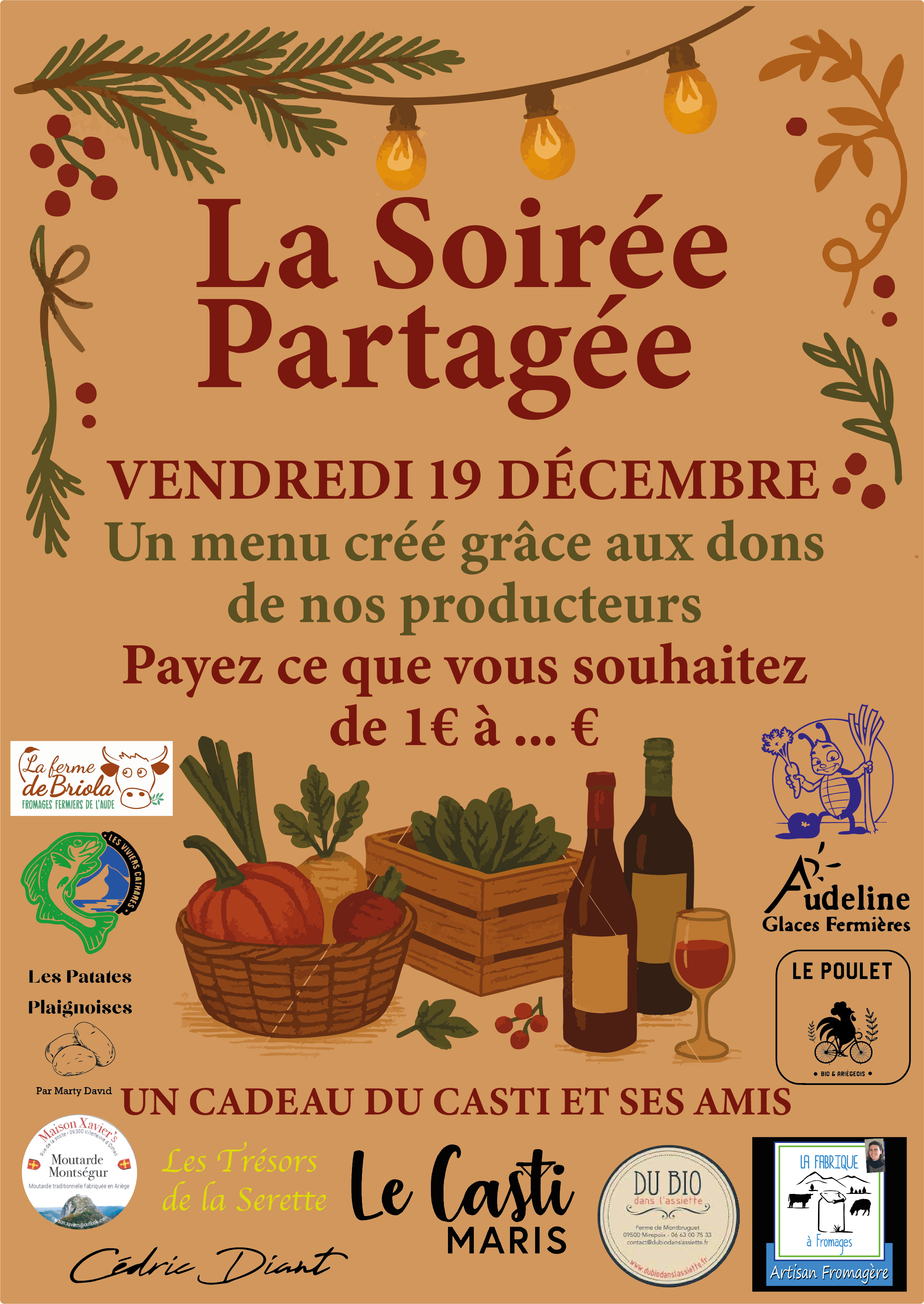 La Soirée de Partage, vendredi 19 décembre au Casti Maris à partir de 19h reservations recommandée »